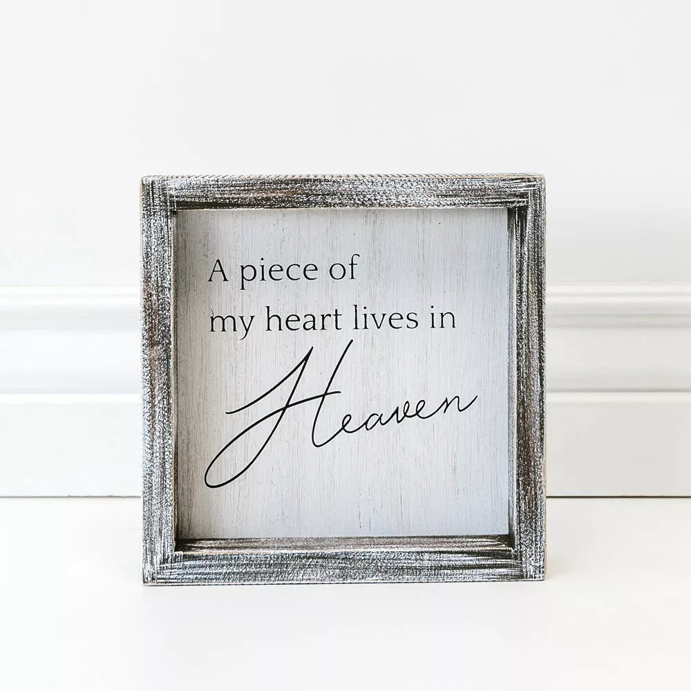This simple wood framed sign uses a pretty combination of white and grey colors and displays, “A Piece Of My Heart Is In Heaven” which makes it a good medium of expressing your love and sympathy to your friends who have a departed family member.