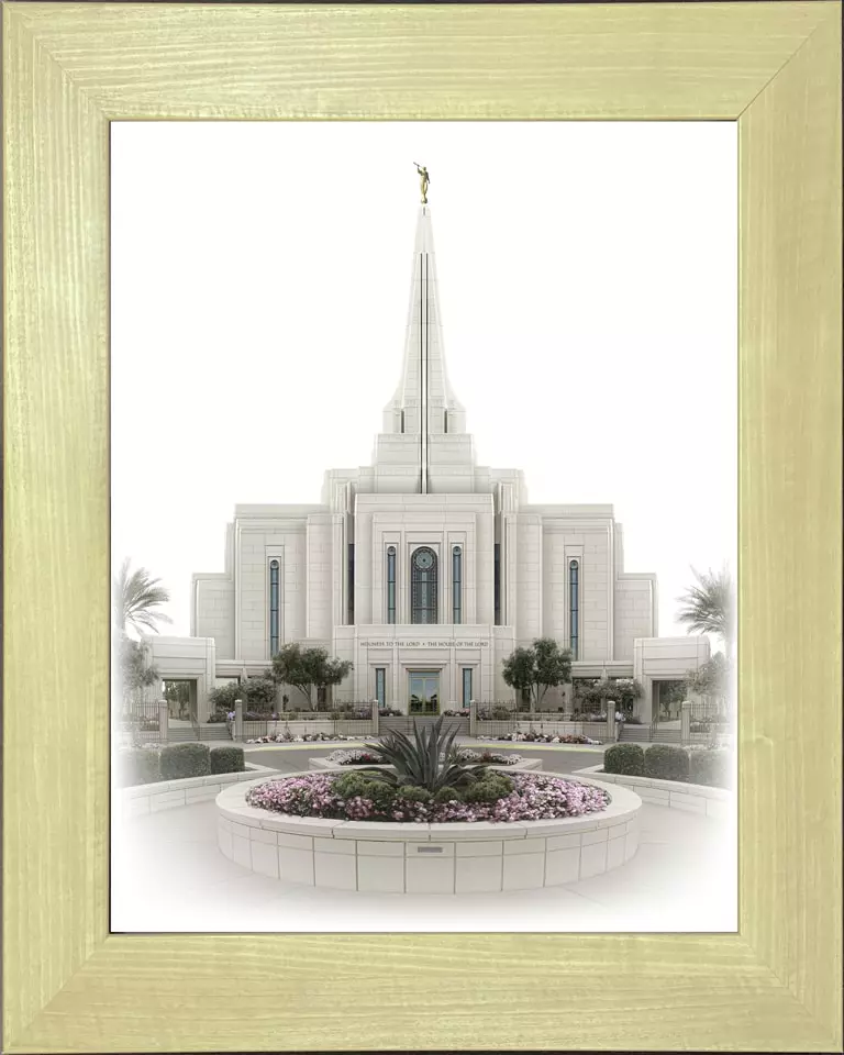 This beautiful Gilbert Temple painting by Brent Broup is part of his Celestial temple series. It makes a great wedding gift and is a beautiful addition to any latter day home decor.