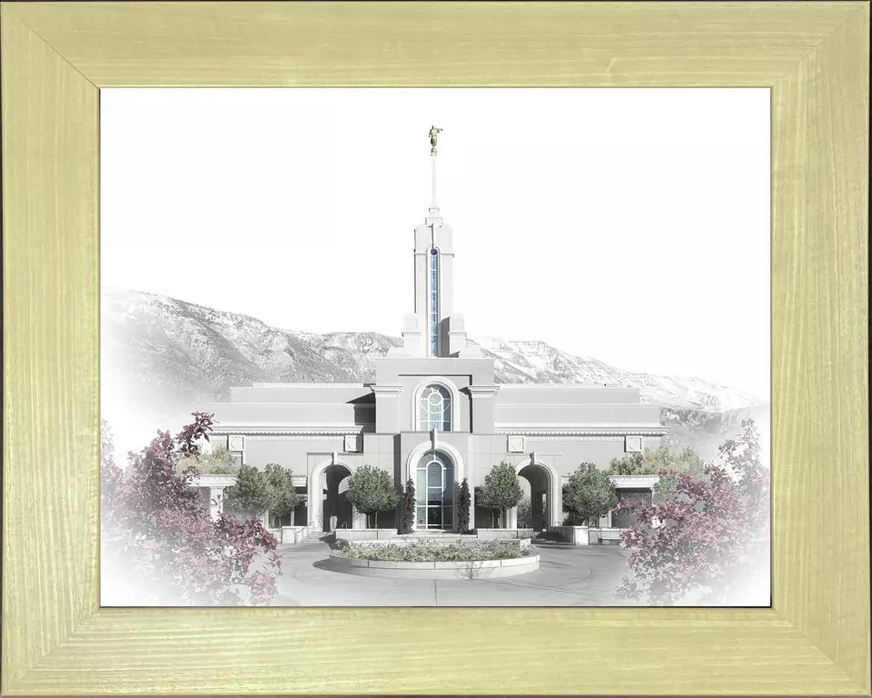 This beautiful Mt Timpanogas painting by Brent Broup is part of his Celestial temple series. It makes a great wedding gift and is a beautiful addition to any latter day home decor.