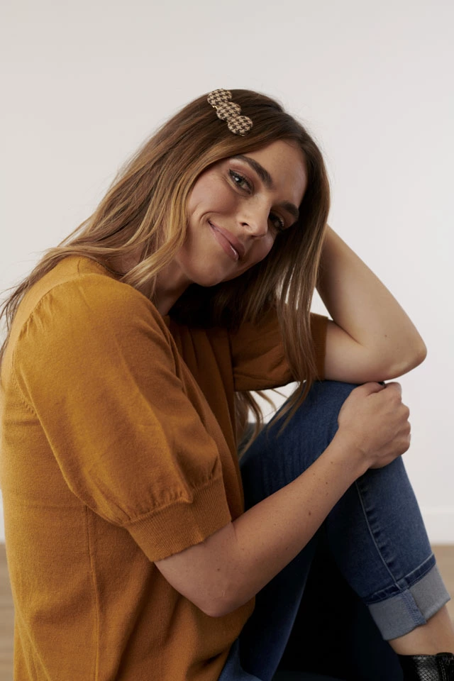 This houndstooth hair clip is as cute as a button . . . or should we say three buttons?