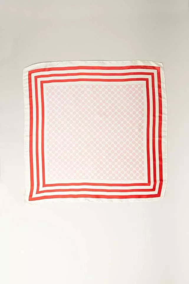 Sometimes the perfect accessory comes in the form of a scarf with red stripes and pink dots and just the right amount of vibrancy to stand out.