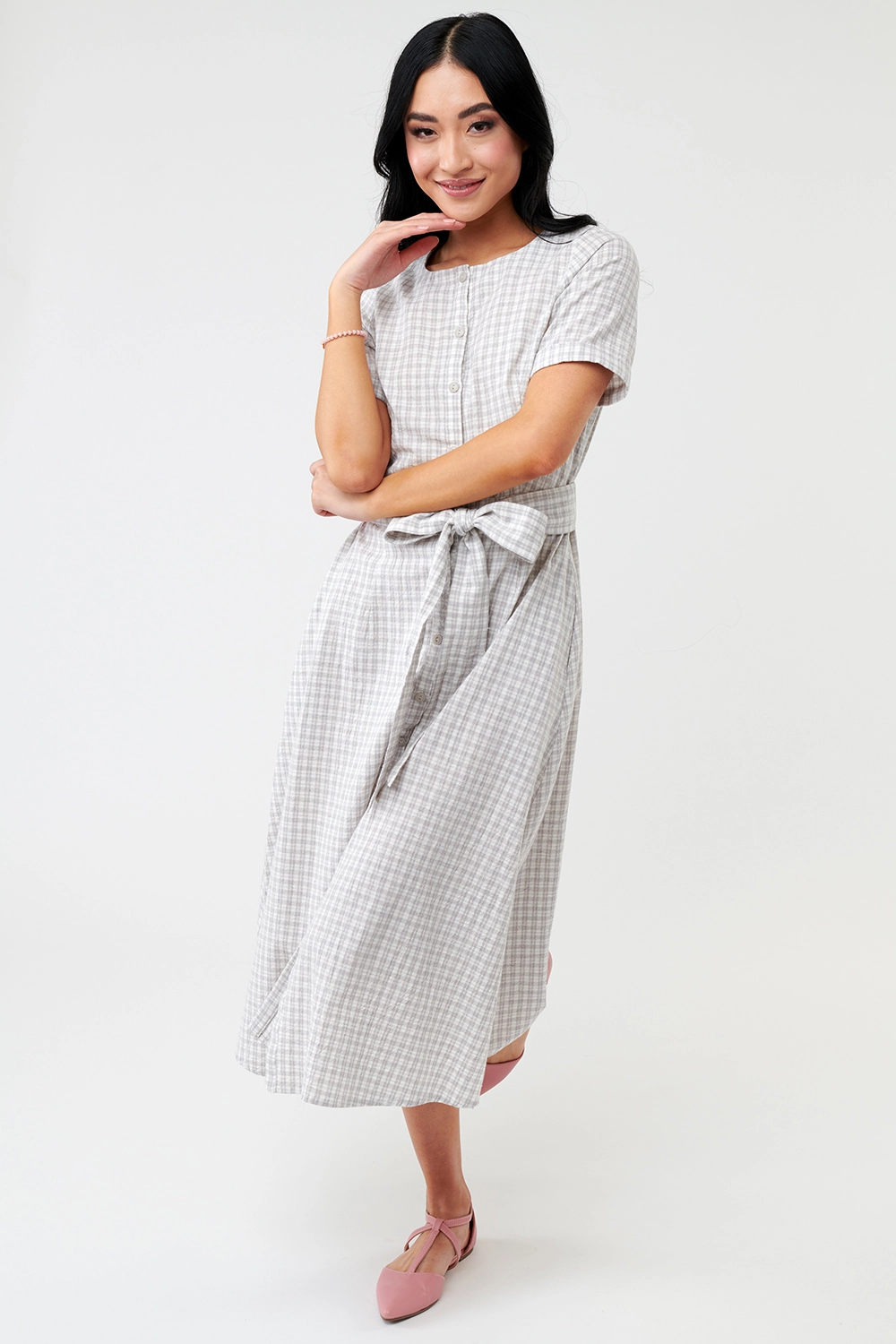 This tie-waist midi dress is both beautiful and nursing friendly. With a flattering tie-waist, this dress is sure to boost your confidence.