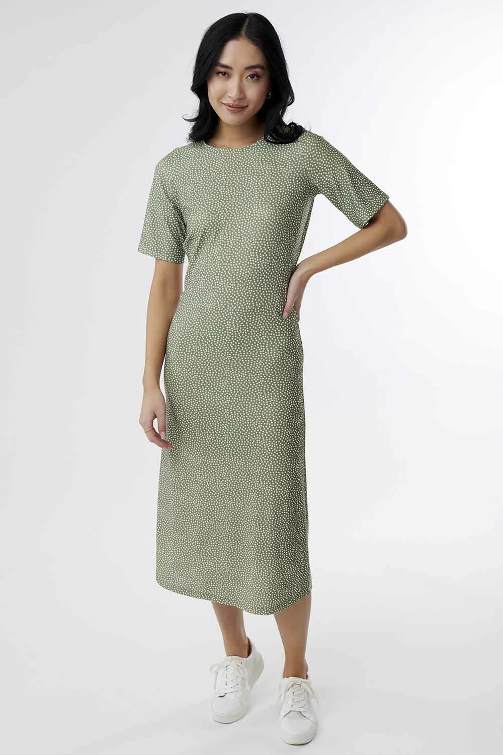 This dress has the perfect balance for the changing seasons with half-length sleeves and a midi skirt. If slightly longer sleeves and skirts are your preference, then this dress is for you!
