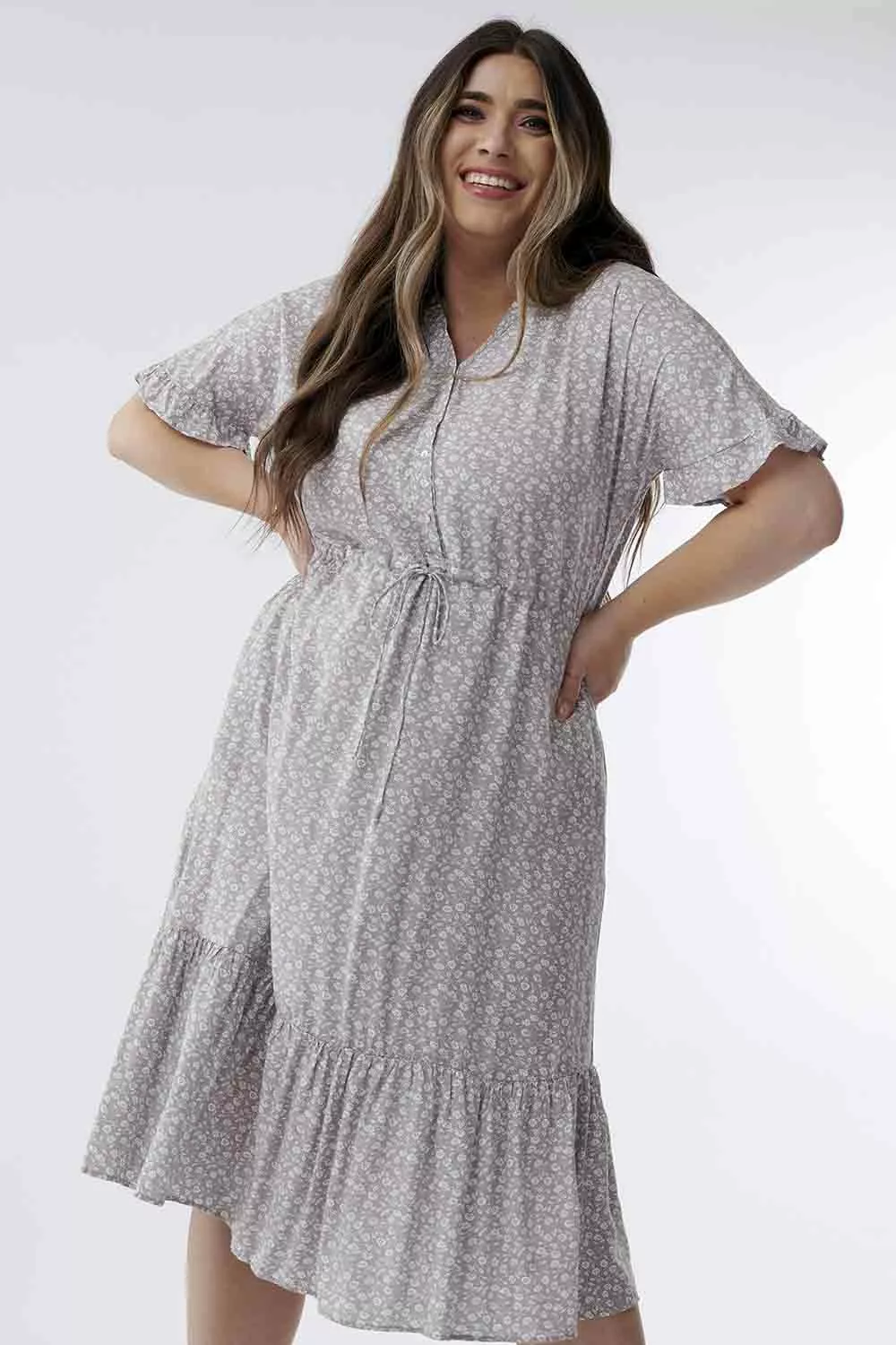 Spruce up your style with this delightful midi dress! Featuring dolman sleeves, functional buttons, and a drawstring waist, this dress is pretty close to perfection.