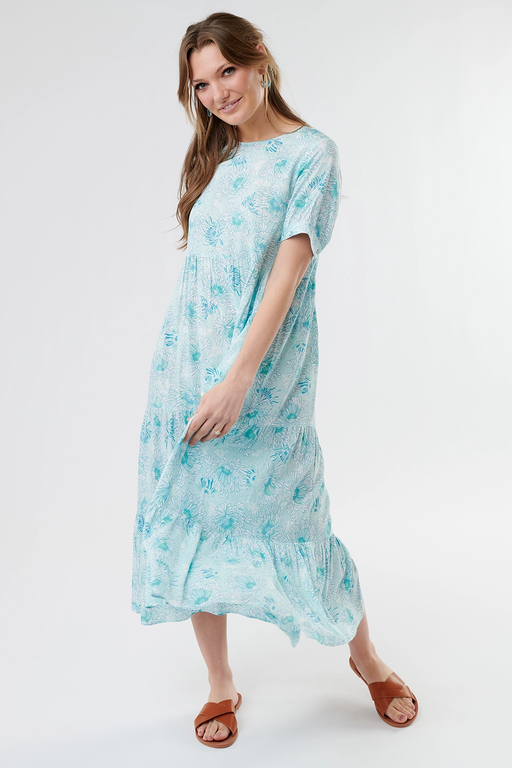 Sweet Salt Cuffed Dolman Sleeve Dress Turquoise And Green Stripe