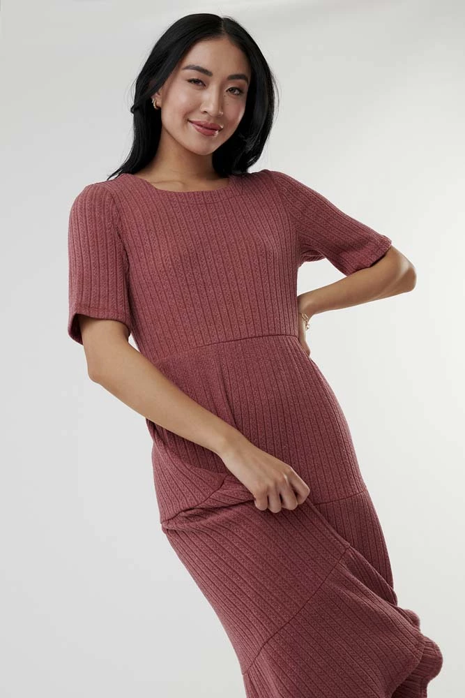 There are so many elements to love on this darling midi dress, from its comfortable knit fabric to its tiered skirt to its square neckline. The only way we could love it more is if it is in your closet!