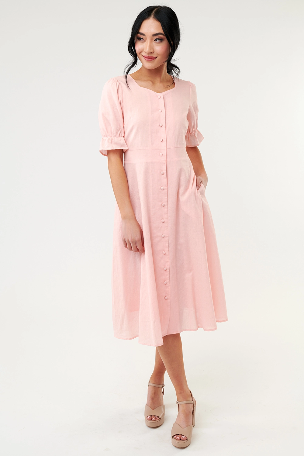 Feel both feminine and fashionable in this beautiful dress with a gorgeous sweetheart neckline and pleated sleeves.