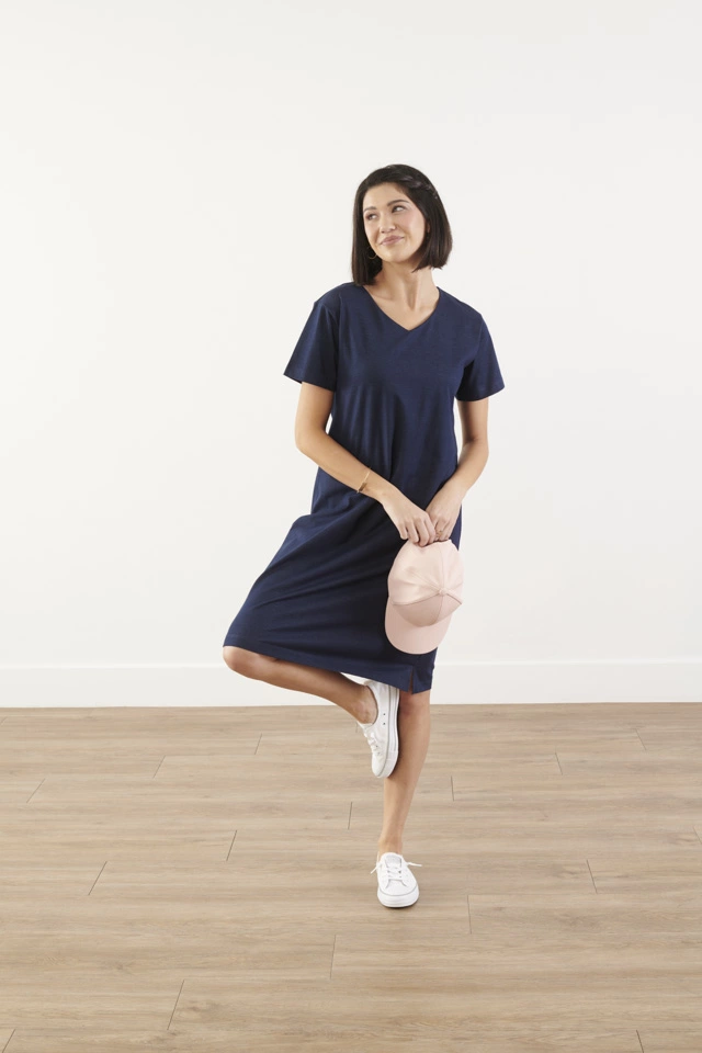 This midi dress is the epitome of the perfect modern house dress. It is flowy and open, with plenty of room to stretch out and feel right at home in it.