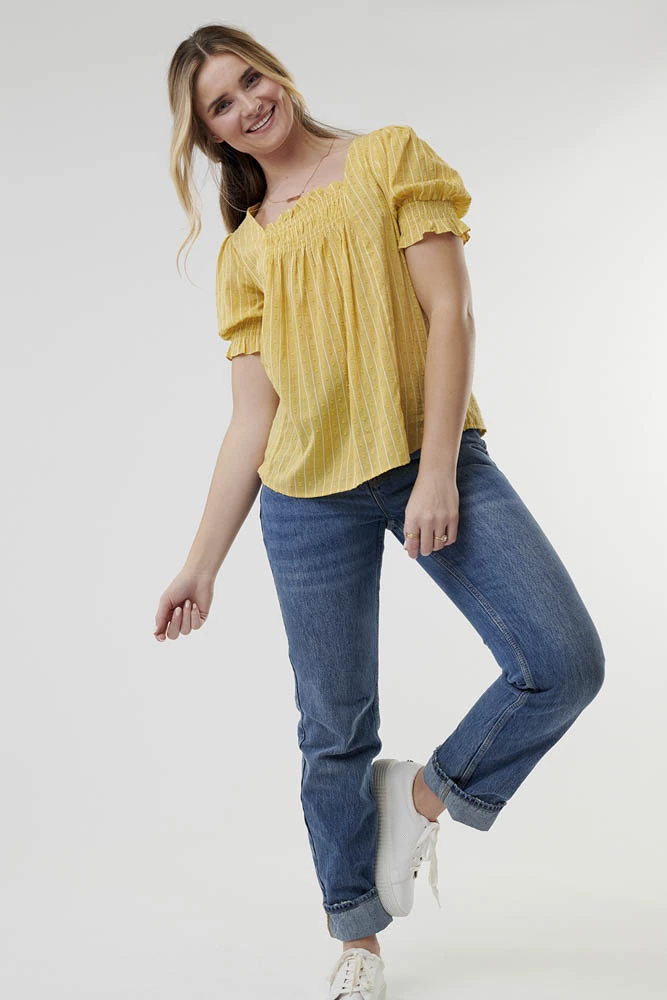 With a unique shirred front and flattering square neckline, this top will be a classic in your wardrobe the moment you put it on. Lightweight and comfortable, this top is perfect for the coming spring weather.